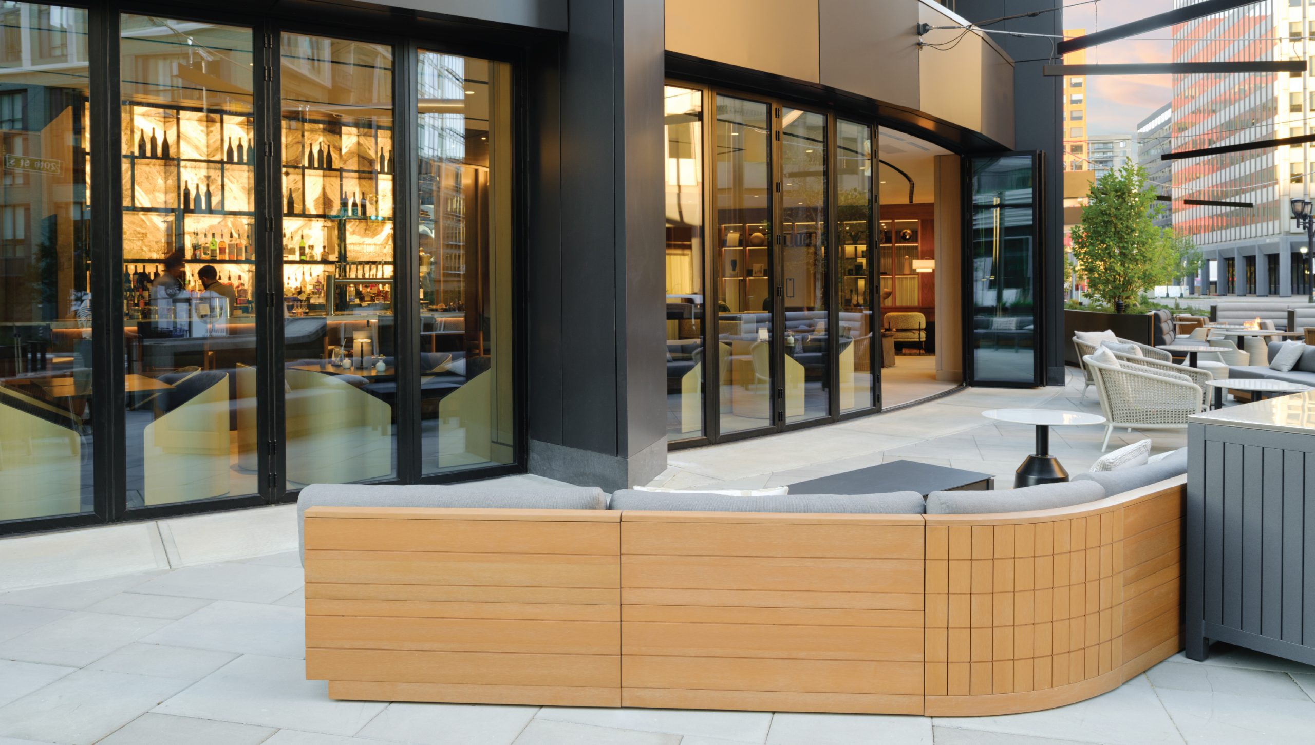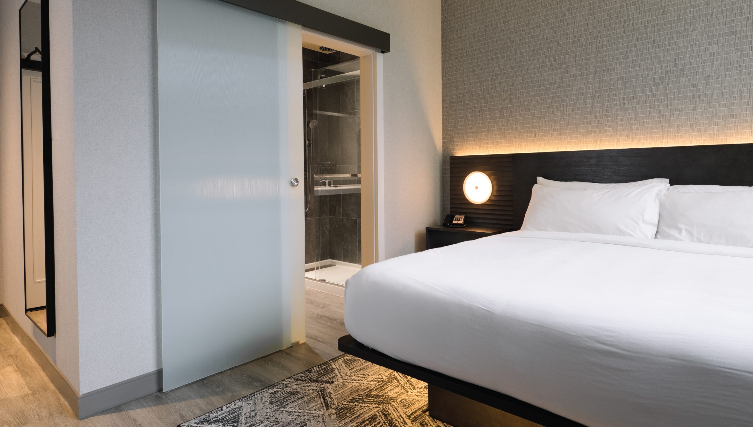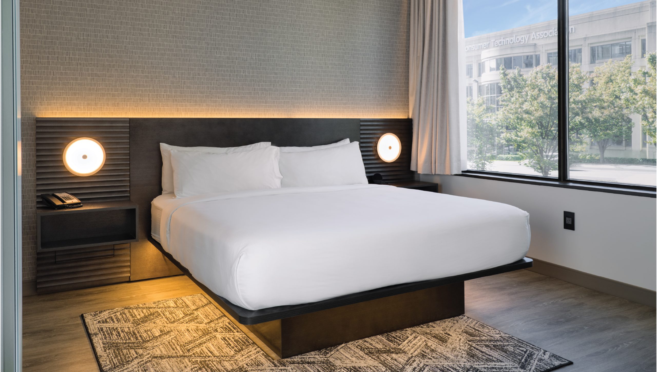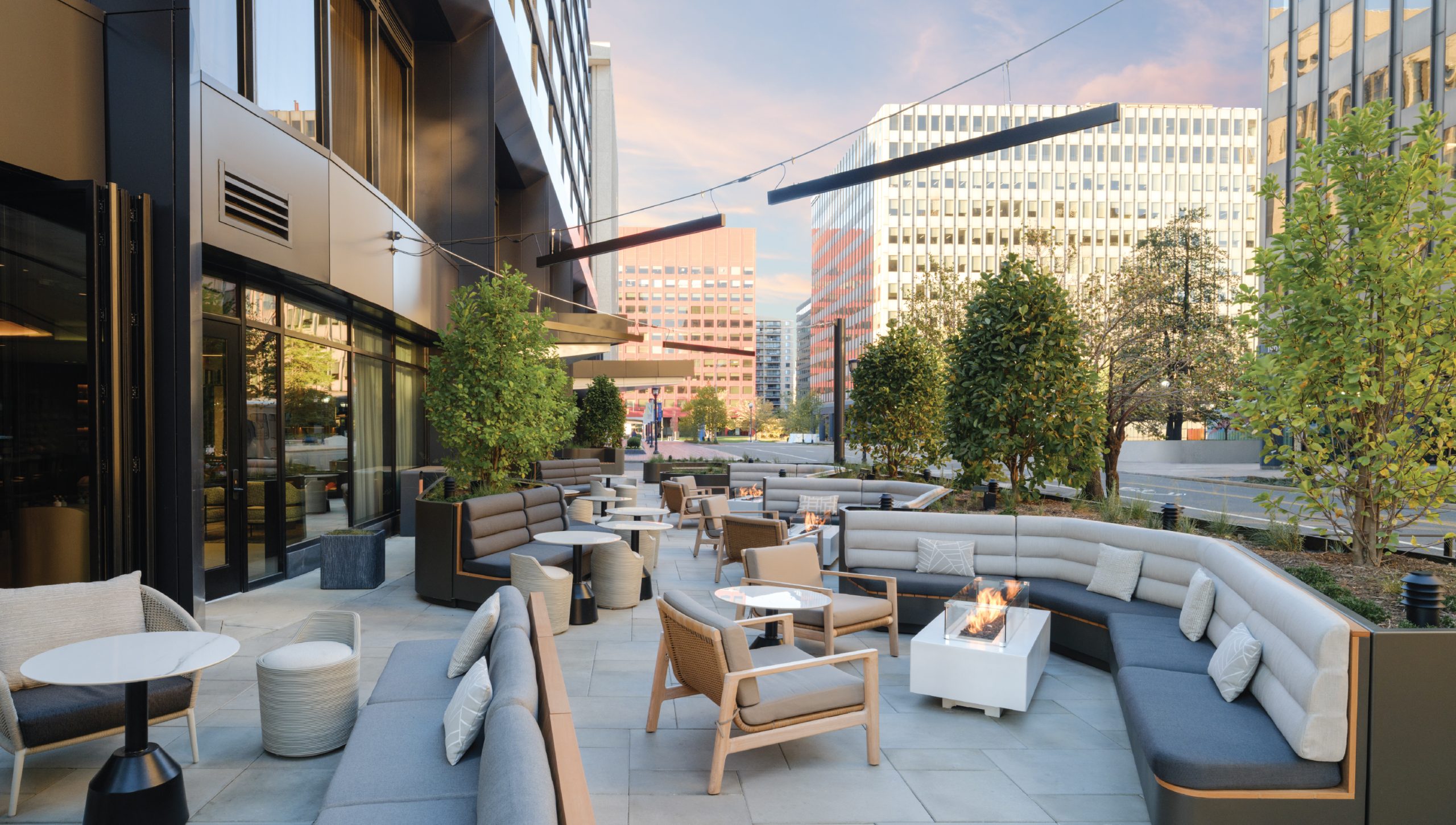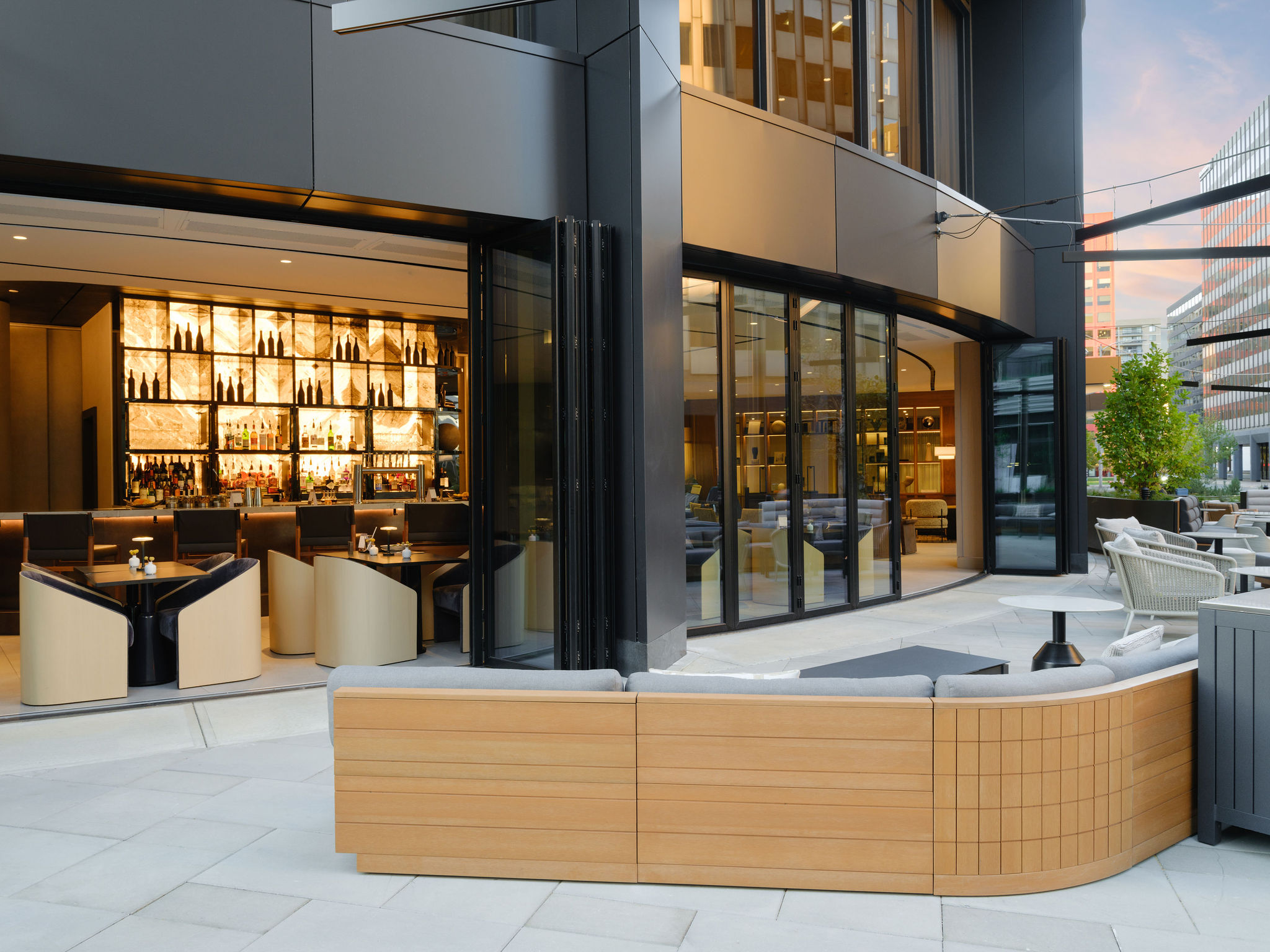 The former Marriott Crystal City at Reagan National Airport in Arlington, VA underwent a dynamic 28-week conversion to become the AC Hotel National Landing, completing its transformation in Spring 2025. This $21.3 million renovation encompassed nearly 200,000 square feet of upgrades, including a striking new building façade, exterior hardscape and patio enhancements, and a full public space reinvention. The lobby was expanded to create a modern, open-concept arrival experience, while the abandoned swimming pool was converted into a state-of-the-art fitness center. Additional scope included a new prep kitchen, renovations to existing guestrooms, and the creation of seven new keys—bringing the total to 355 guestrooms.
