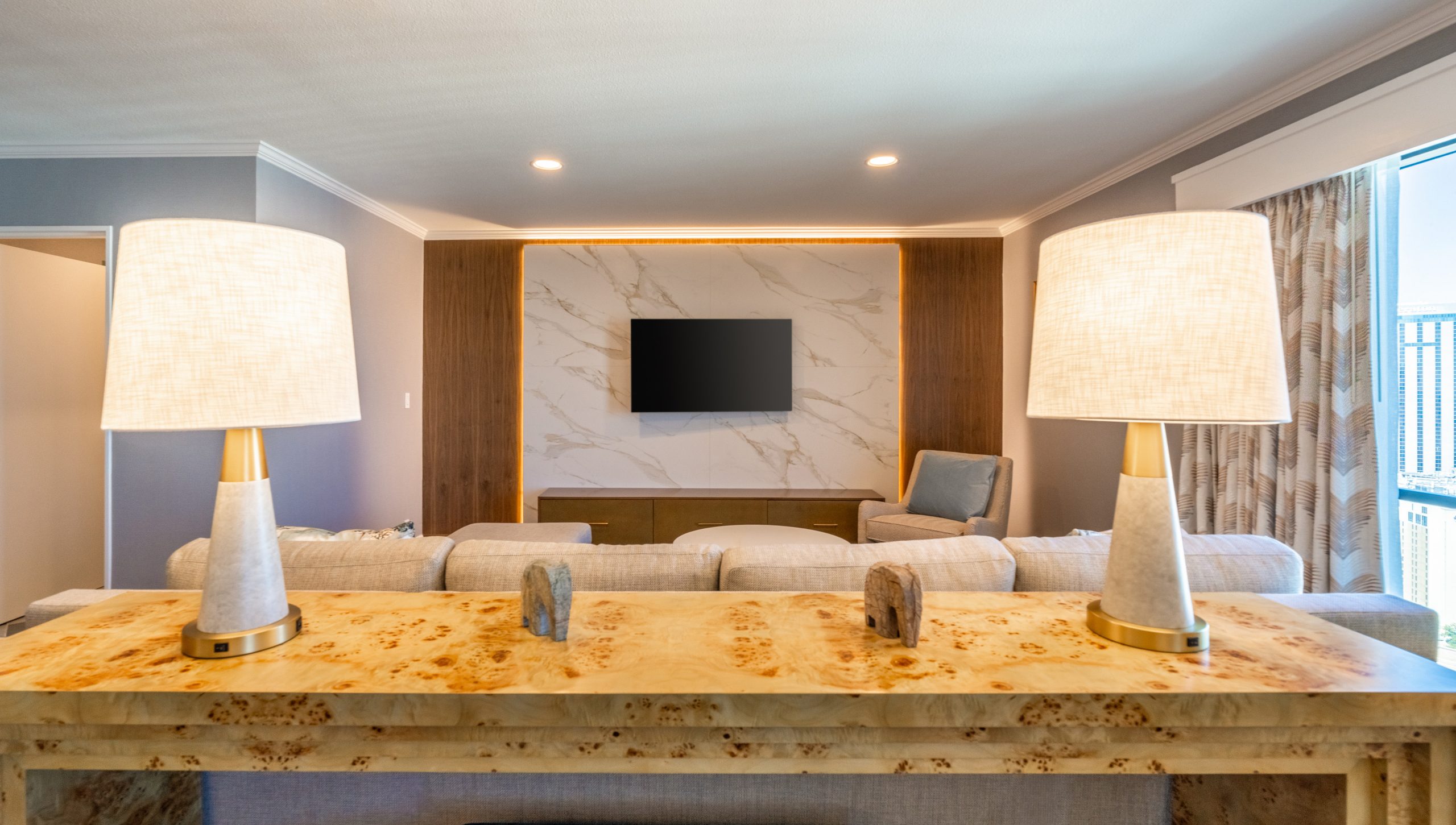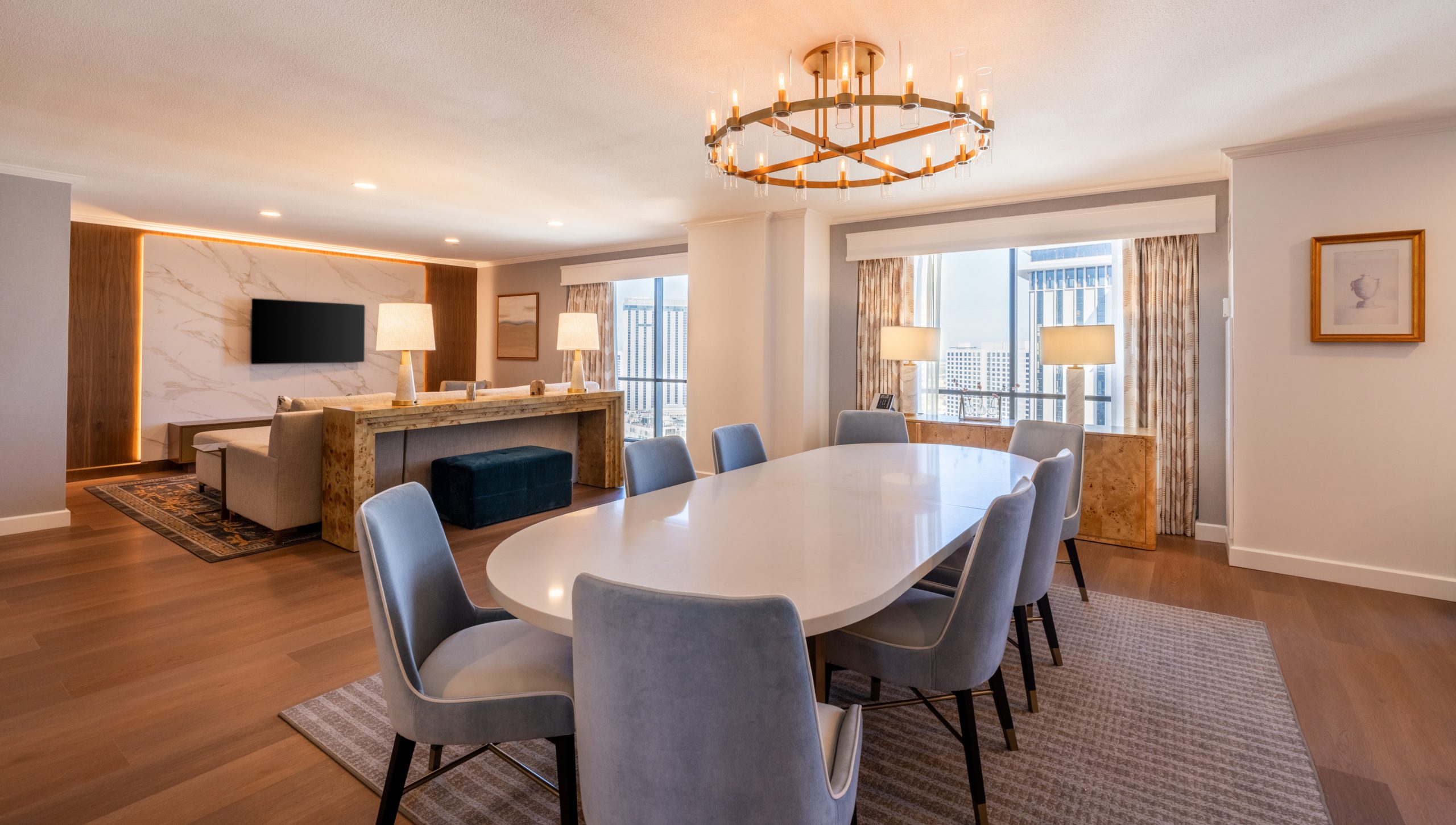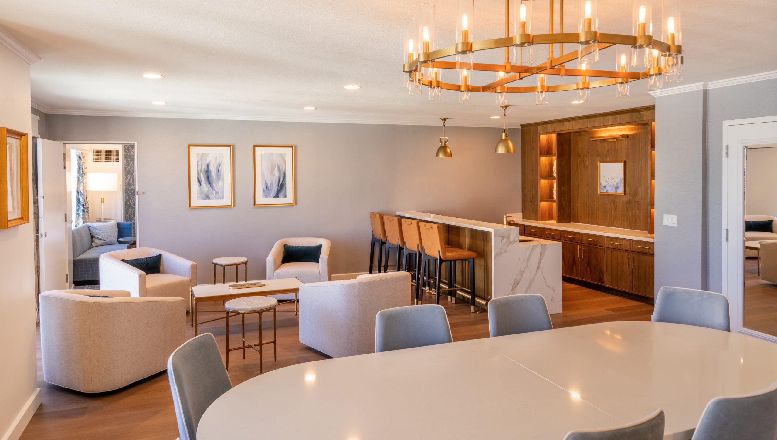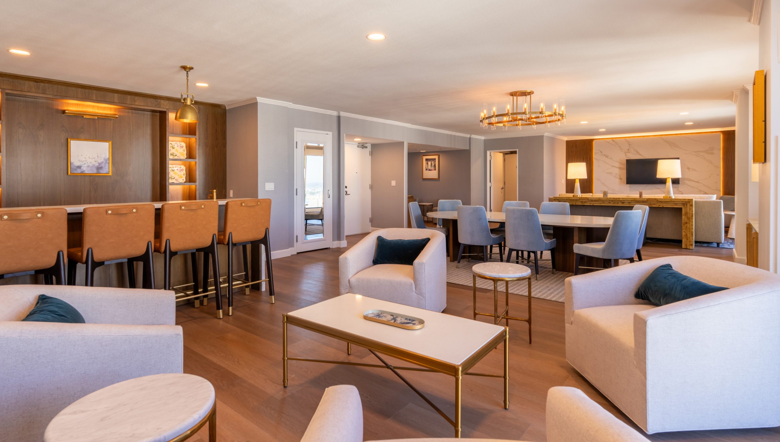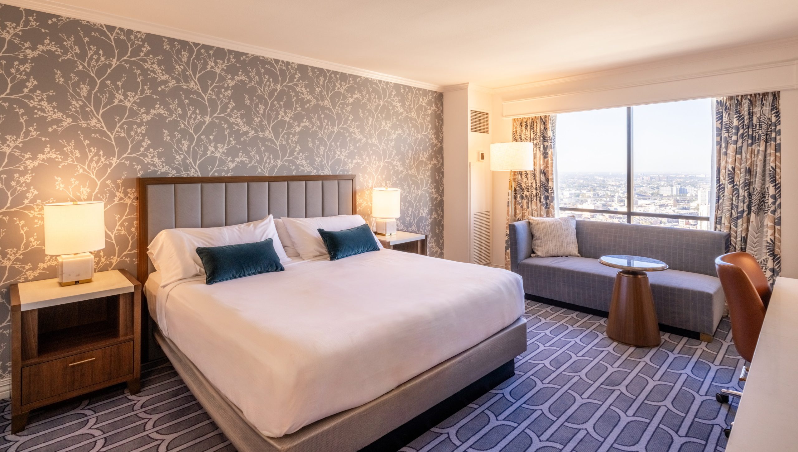 A comprehensive renovation across nine guestroom floors, including upgraded guestrooms, corridors, and redesigned executive suites on floors 26 and 27 of the main tower. The project introduced new tile in entry and bathroom areas, refreshed guestrooms with new carpet and vinyl wallcovering, and installed all-new FF&E throughout. Executive suites received fully redesigned layouts featuring custom millwork that blends modern finishes with historic charm.