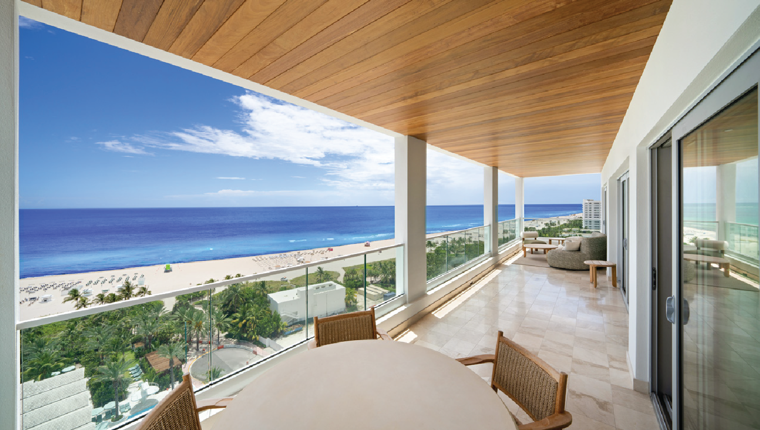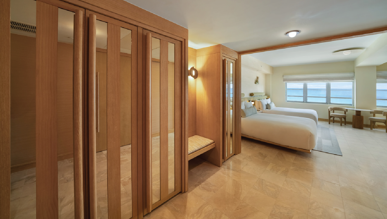 The Shelborne in Miami Beach underwent a transformative 14-month repositioning to become a Proper Hotel, with construction touching nearly every square foot of the property. The $50+ million renovation included comprehensive upgrades to all 291 guestrooms—featuring more than 50 unique room types, 13 townhomes, a penthouse, and a presidential suite—as well as extensive work across 35,000 square feet of interior amenity spaces. Simultaneously, 45,000 square feet of exterior space was revitalized with a new pool deck, nine cabanas, outdoor dining outlet, and lush landscaping. The project also included the design-build of a new FP&L vault requiring complex dewatering, all executed under extremely confined logistics with over 20 subcontractors working across five active zones.