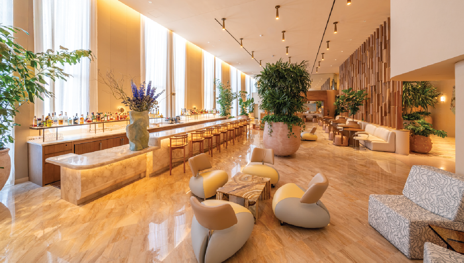Interior scope included 35,000 SF of amenity spaces: new café, lobby, restaurant, and bar.